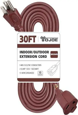 YOJOE Indoor Outdoor Extension Cord, 3 Prong 13A Weatherproof Power Cord, 16 Gauge Heavy Duty 30 ft Brown Extension Cord for Garage, Garden and Home, 16/3 SJTW UL Listed