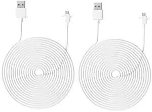 Smays 20 ft Cable for WYZE Cam Pan v3 Camera, Long Micro USB Flat Power Cord, 90 Degree 2-Pack, White