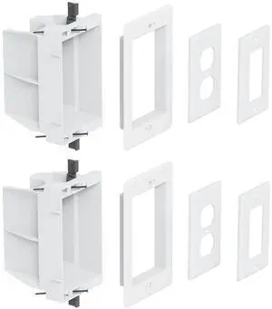 DVFR1W-1 Recessed Electrical/Outlet Box Wall Plate Kit, Single Gang, Recessed Receptacle Outlet Box for TV, Tablet and Household Appliance, Suitable for GFCI Outlet and Standard Outlet, White (2 Pack)
