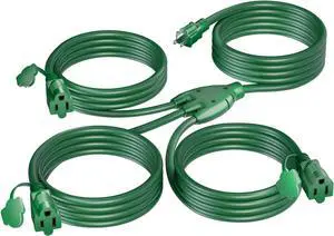 Features: This 25 Ft power extension cord is made by Watt's Wire and features a Triple (3) Outlets style with pvc material. It supports a voltage of 125 volts and an input current of . The cable is Yellow in color and is UL listed. It comes with a connector and does not require batteries.
