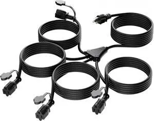 46FT Christmas Lights Outdoor Extension Cord with Mutil Outlets, ETL Listed Heavy Duty Electrical Cord with Protective Covers, Weatherproof Extension Cord for Outside, 16AWG/1625W, Green