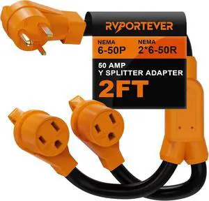 RealPlus 50 Amp Y Splitter Adapter Cord, 4 Prong 250-Volt, NEMA 14-50P to 2X NEMA 14-50R, Heavy Duty 6/3+8/1 Gauge STW Wire, 3 Feet (Yellow)