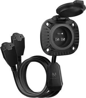 MICTUNING 15Amp 250V AC Port Plug with Heavy Duty Integrated Dual 20" Extension Cord Y Splitter Cable and Water-Resistant Spring-loaded Cover - Black