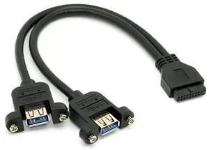Vszerda USB 3.0 Dual Ports A Female Screw Mount Type to Motherboard 20pin Header Cable Black 25CM