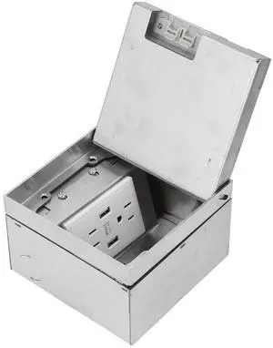 Recessed Floor Socket, 2 AC 3 Prong Outlets and 2 USB Ports Waterproof Stainless Steel Junction Box, High Temp Resistance, Embedded Installation, Electrical Outlet Covcer Box