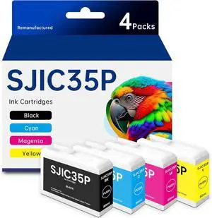 SJIC35P Ink Cartridges 4-Color Set Remanufactured SJIC35P-BK SJIC35P-C SJIC35P-M SJIC35P-Y Ink Cartridge Replacement for ColorWorks C6000 Series CW-C6000A C6000P C6500A C6500P Gloss Printer Ink