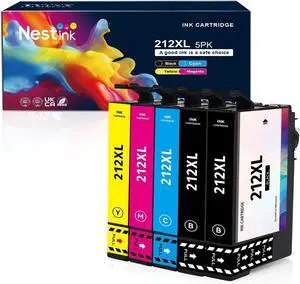 212XL Ink Cartridges, Remanufactured Replacement for 212 XL Ink Cartridges Combo Pack for Expression XP-4100 XP-4105 Workforce WF-2830 WF-2850 Printer (2 Black Cyan Magenta Yellow, 5-Pack)