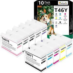 T46 T46Y Ink Cartridges with New Chip Remanufactured for T46Y1 T46Y2 T46Y3 T46Y4 T46Y5 T46Y6 T46Y7 T46Y8 T46Y9 T46YD for SureColor P900 P900 17" Inkjet Printer, 10 Pack UltraChrome PRO10 Ink Refill