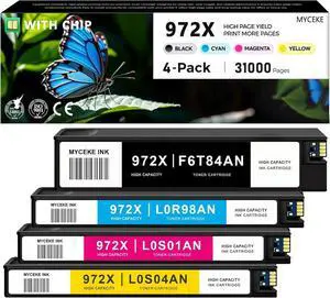 972X High Yield Ink Cartridges Replacement for HP 972 972A Ink, Compatible with HP PageWide Pro 477dw 477dn 577dw 577z 452dn 452dw 552dw P55250dw P57750dw Printer (Full Set BK/C/M/Y)