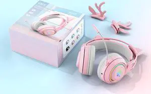 XIBERIA PC Gaming Headphones Wired Over-Ear USB 7.1 Surround Sound Headset with Microphone - Pink Elk edition