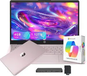 HP Stream 14" HD Laptops for Student & Business, Intel Processor N150, 4GB RAM, 288GB Storage (128GB UFS+160GB Docking Station Set), Copilot AI, 1-Year Office 365, 720p Camera, Win 11, Pink