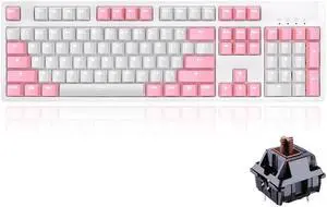 E-Yooso Z-88 Wired Mechanical Gaming Keyboard, Rainbow LED Backlit, 60% Compact Design, 81Keys Anti-Ghosting with Tactile&Clicky Blue Switches for PC/Laptop (Pink)