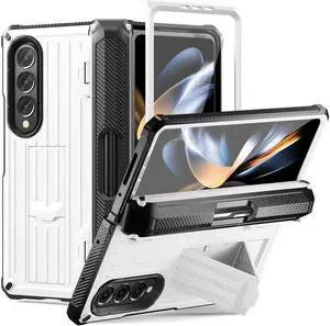 BONAEVER Case for Samsung Galaxy Z Fold 4 2022 5G Military-Grade Full-Body Shockproof Rugged Bumper Case Cover with Built-in Screen Protector & Stand and & S Pen Slot White