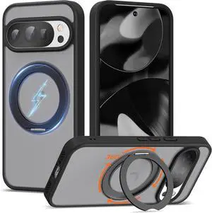 WERLEO Magnetic Case for Google Pixel 10/10 Pro with 360° Rotatable Stand [Compatible with Mag Safe], Translucent Matte Military Shockproof Protective Cover for Google Pixel 10/10 Pro