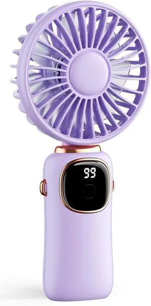 Mini Handheld Fan, Portable Handheld Fan 5 Speed with LED Display Handheld/Neck/Desk 3 in 1,for Travel/Outdoor/Camping(Purple)