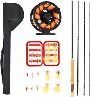 Fly Fishing Combo Kit, IM7 Carbon Fly Fishing Rod and Reel Combo, Starter Fly Rod and Reel Outfit with Rod Bag, Tackle Box, 6 Short-Tail & 4 Long-Tail Fly Hooks, for Travel, Holiday Choice