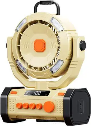 10400 mAh Camping Fan with LED Lantern, 9 inch Rechargeable Battery Operated Fan with Hook, Portable Tent Fan, Perfect Battery Powered Outdoor Fan for Bedroom, Table, Home, Office, Travel, BBQ