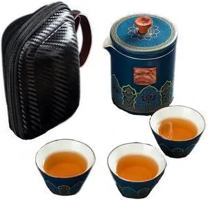 Ceramic Travel Tea Set with 1 Pot & 2 Cups Gaiwan Teapot Set for Office & Travel