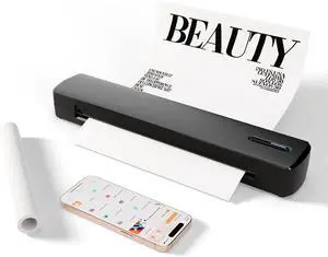 lyrlody Wireles Thermal Printer, Inkless Printer Portable Mini A4 Printer for Travel Home Business Office, Supports Wide Paper Sizes, Thermal Technology, Wireless Printing with (Black)