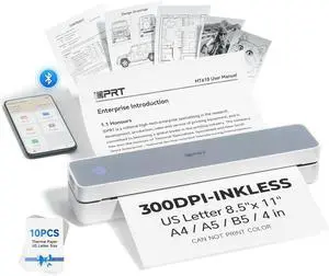 iDPRT Portable Printer Wireless for Travel - Bluetooth Mobile Printer Support for 8.5"x11" US Letter, Inkless Compatible with iOS, Android, Laptop for Office, Car and Home, School (Portable, White)