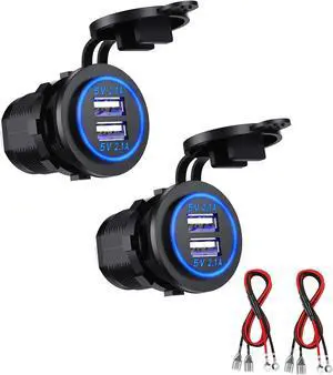12V USB Outlet, 2 PCS Dual USB Charger Socket Power Outlet 2.0 2.1A with 23.7 Inch Wire for 12/24V Car Boat Marine Motorcycle RV Truck Camper Vehicles and More