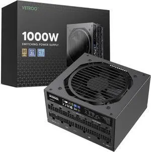 Vetroo 1000W Black Power Supply ATX 3.1 Ready Dual PCIe 5.1, 80 Plus Gold Full Modular, Eco Mode with 120mm FDB Fan, Compact Size, 10 Year Warranty for Gaming PC
