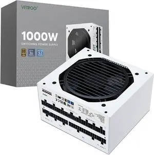 Vetroo 1000W White Power Supply ATX 3.1 Ready Dual PCIe 5.1, 80 Plus Gold Full Modular, Eco Mode with 120mm FDB Fan, Compact Size, 10 Year Warranty for Gaming PC