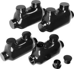 (Pack of 4) AP-10201, Black Insulated in-Line Splice Connector, 2-14 Wire Range, 2.46" L x 0.83" W x 1.4" H, Pre-Filled with Oxide Inhibitor, Easy Re-Entry, Rubber Vinyl Coating, 2 Set Screws, 4-Pack