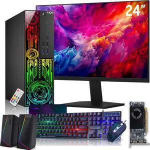 RGB Gaming PC Desktop Computer + 24 Inch FHD Monitor Intel Core i7 up to 4.0 GHz, GT 1030 2GB, 16GB DDR4, 512GB SSD, Wi-Fi, Speaker, Windows 11 Pro