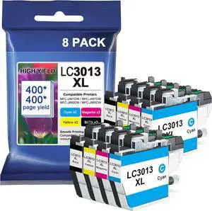 LC3013 Ink Cartridges BK/C/M/Y 8-Pack High Yield Compatible for Brother Ink Cartridges LC3013 LC3013 XL LC3013XL LC3011 Combo Pack Work for Brother MFC-J497DW MFC-J491DW MFC-J895DW MFC-J690DW Printer