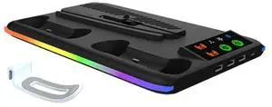For PS5/Slim/Pro For 5 Console Compatible Cooling Stand With LED Controller Charging Station, 3-Gear Fan Includ