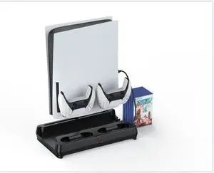 Vertical Stand with Cooling Fan for PS5 Console and PS5 Digital Edition, PS5 Dualsense Charging Station, Charging Station Dock with Dual Controller Charger Ports and Retractable Game Storage for PS5