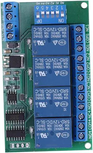 4 Channel DC 12V RS485 Relay Module Modbus RTU And AT Command Remote Control Switch For PLC PTZ Camera Security Monitoring