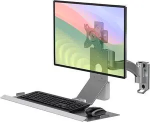 Monitor and Keyboard Wall Mount, Stand/sit Workstation, with Pneumatic Arm, Load 10kg, with 210 * 600mm Foldable Keyboard Tray, for 15-32 Inch Single Screen(Silver)