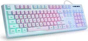 HUO JI Gaming Keyboard USB Wired with Rainbow Led Backlit, Quiet Floating Keys, Mechanical Feeling, Spill Resistant, Ergonomic for Xbox, Ps Series, Desktop, Computer, Pc, Purple Blue