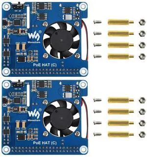 Waveshare 2PCS POE HAT Type C, Compatible with Raspberry Pi 3B+/4B, 802.3af/at Power-Sourcing Equipment Required, 12V and 5V Power Outputs to Support More Peripherals-2PCS Version