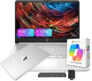 HP Stream 14" HD Laptops for Student & Business, Intel Processor N150, 4GB RAM, 288GB Storage (128GB UFS+160GB Docking Station Set), Copilot AI, 1-Year Office 365, 720p Camera, Win 11, Silver