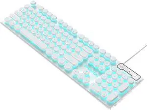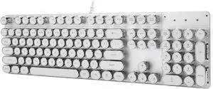 Gaming Mechanical Keyboard with Tactiled Switches White Backlit Round Retro Keycaps 104-Key Media Control White
