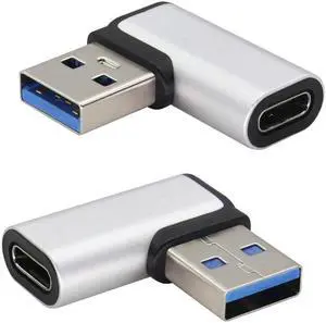 2 Pack Right Angle USB A to USB C Adapter 90 Degree Up and Down Angle USB 3.0 Male to Type C Female Connector for PC Laptop Tablet and Phones