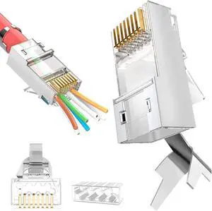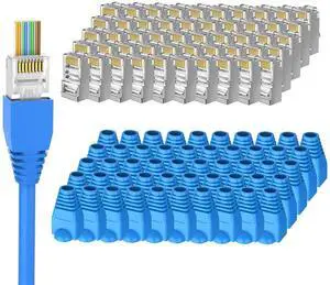 Shielded RJ45 Connectors, Cat 6 RJ45 Pass Through Shielded Plugs 50-Pack, Gold Plated Modular Plug Ethernet Ends with Strain Relief Boots for Solid and Standard Cables