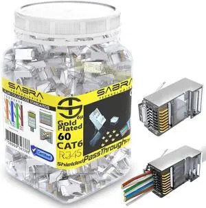 Shielded Cat6 rj45 Pass Through connectors 60-Count, Internal Ground RJ45 Shielded cat6 connectors