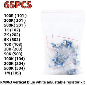 65PCS 13values * 5 PCS=65PCS RM063 vertical blue white adjustable resistor kit 100 ohm -1M ohm