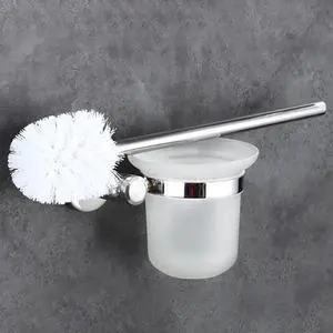 Free Punch Stainless Steel Toilet Cleaning Brush Bathroom Toilet Brush Wall Mounted Toilet Brush Holders With Frosted Glass Cup