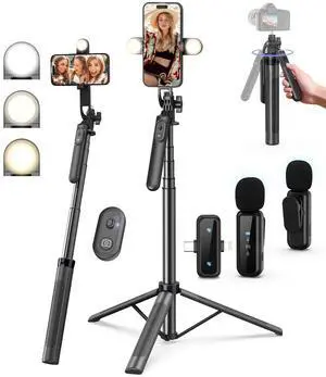 Selfie Stick Tripod, All in One Extendable & Portable iPhone Tripod Selfie Stick with Wireless Remote Compatible with iPhone 14 13 12 11 pro Xs Max Xr X 8 7, Galaxy Note10/S20/S10/OnePlus 9/9 PRO etc