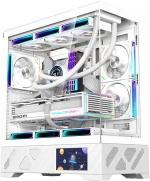 UNIWAY GAMING Aurora Series - Ryzen 7 5700X, RTX5060, 32GB RAM, 1TB NVMe SSD, Build-in LCD Screen, AIO Liquid Cooler, Windows11 Pro, AIReady, 1Year Warranty  - Black RTX5060 Ti White