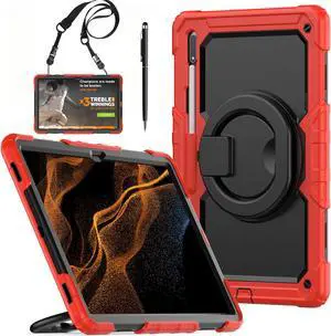 BONAEVER Case for Samsung Galaxy Tab S10 Ultra 2024 / S9 Ultra 2023 / Galaxy S8 Ultra 14.6 inch Protective Cover with Screen Protector Stylus Pen Pen Holder Hand/Shoulder Strap Red