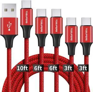 USB C Cable Fast Charging Braided Type C Charger Cable Compatible with Samsung Galaxy A10e A10s A20 A20s A30s A51 A71, S20 S10 S9 S8 Plus, Note 9, LG Stylo 6 5 K51 [10/6.6/6.6/3/3 ft, 5-Pack]