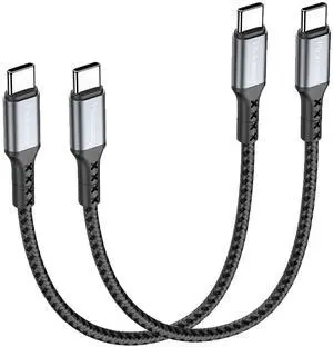 1ft USB C Charging Cable, 2 Pack Braided USB C to USB C Cable, Type C to C Charger Cable Fast Charging for Samsung Galaxy S24 S23 S22, for iPhone 15 Pro Max/Plus, for MacBook/iPad, Pixel
