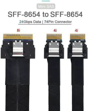 Mini SAS Cable, SFF-8654 8i to 2 * SFF-8643 Server, MINISAS Server Array Card Cable, 12 Gbps