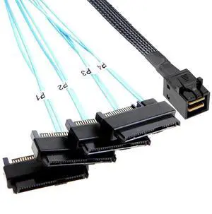 WISDUM SFF86434SATA1M Internal 12G HD Mini SAS SFF-8643 to 4 x SATA Cable Hard Drive Cable,HD Mini SAS Host/Controller to 4 SATA Target/Backplane-3.3ft